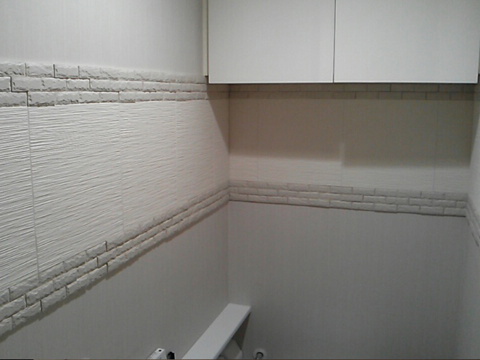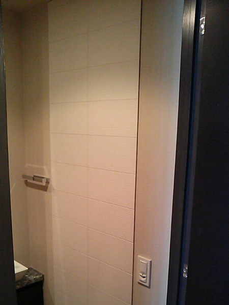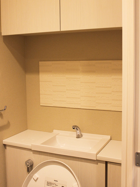 トイレ・洗面におけるエコカラット施工例です。高級感が出るためまるでホテルのトイレと見間違えるくらい。