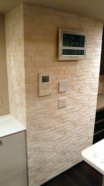 リビングにおけるエコカラット施工例です。重厚感、上質感がでるのはもちろんのこと、エコカラット壁材の種類によってもかなり印象が変わっているのがわかると思います。