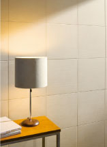 ナチュラルな石面凹凸デザイン。照明による陰影が